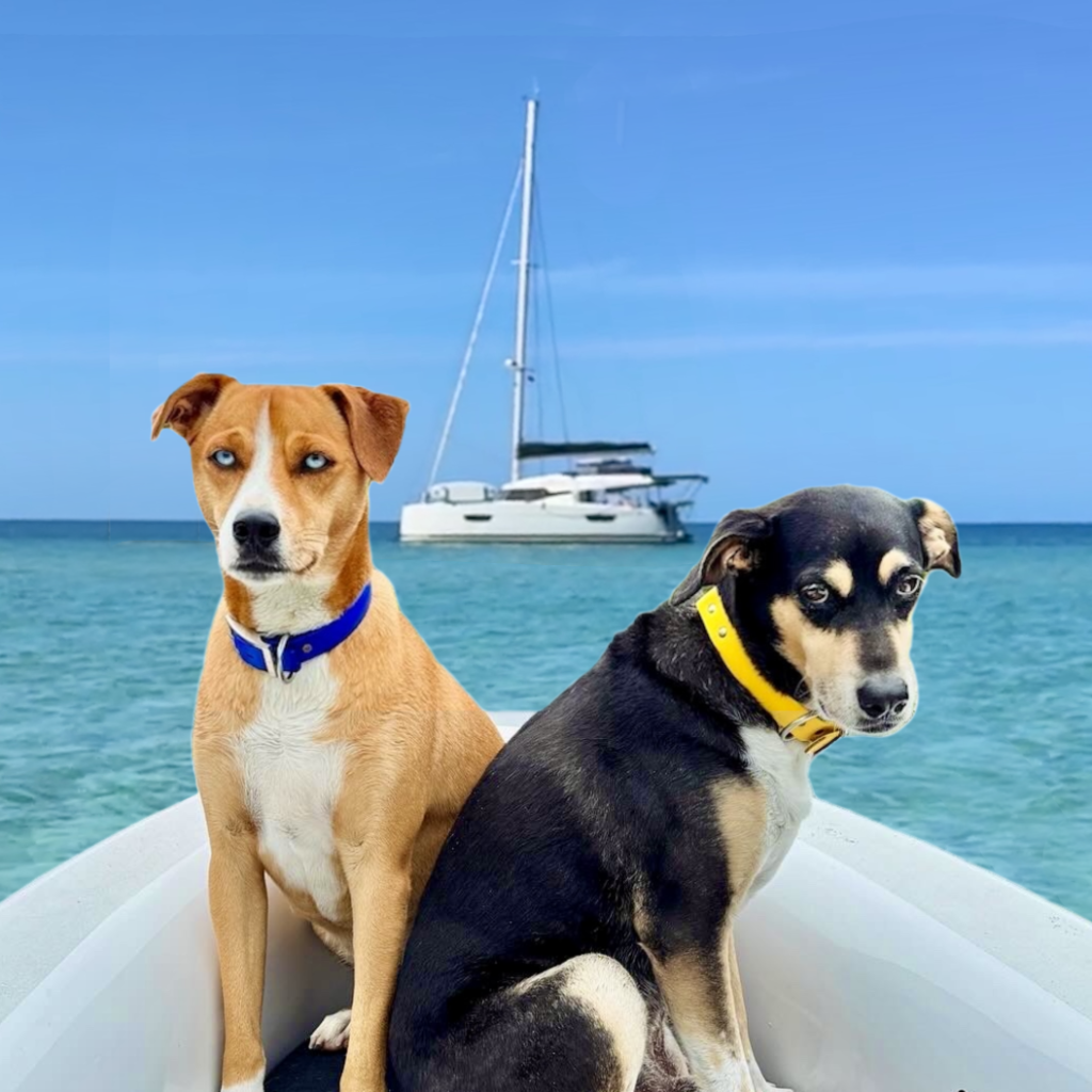 Two rescue pups. Two adoring humans. One boat. A world to explore.